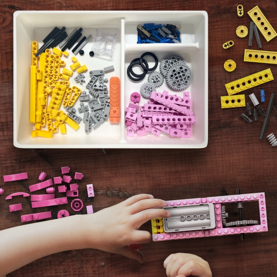 Our storage boxes are designed to be strong and durable, measuring 11.9X14.6X6inches. Each box features a removable sorting tray that making it easy for children to classify blocks by color and size before assembling their robot.